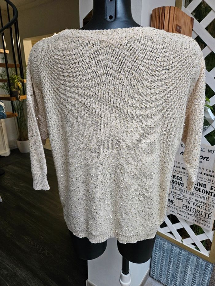 Mango pull manches courtes beige paillettes taille L - photo numéro 13
