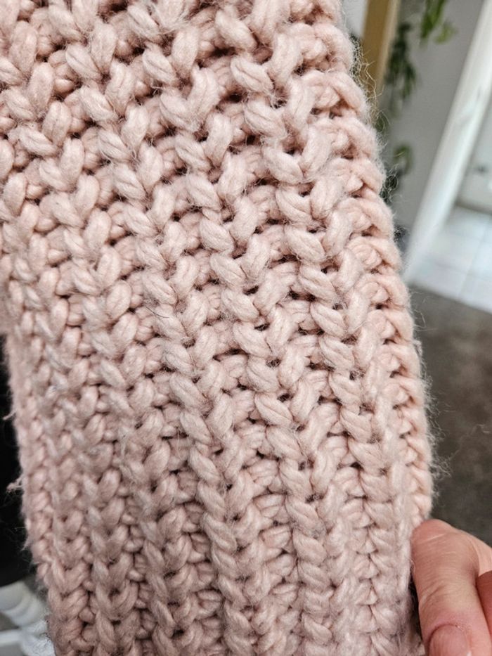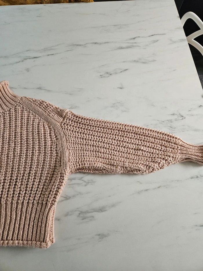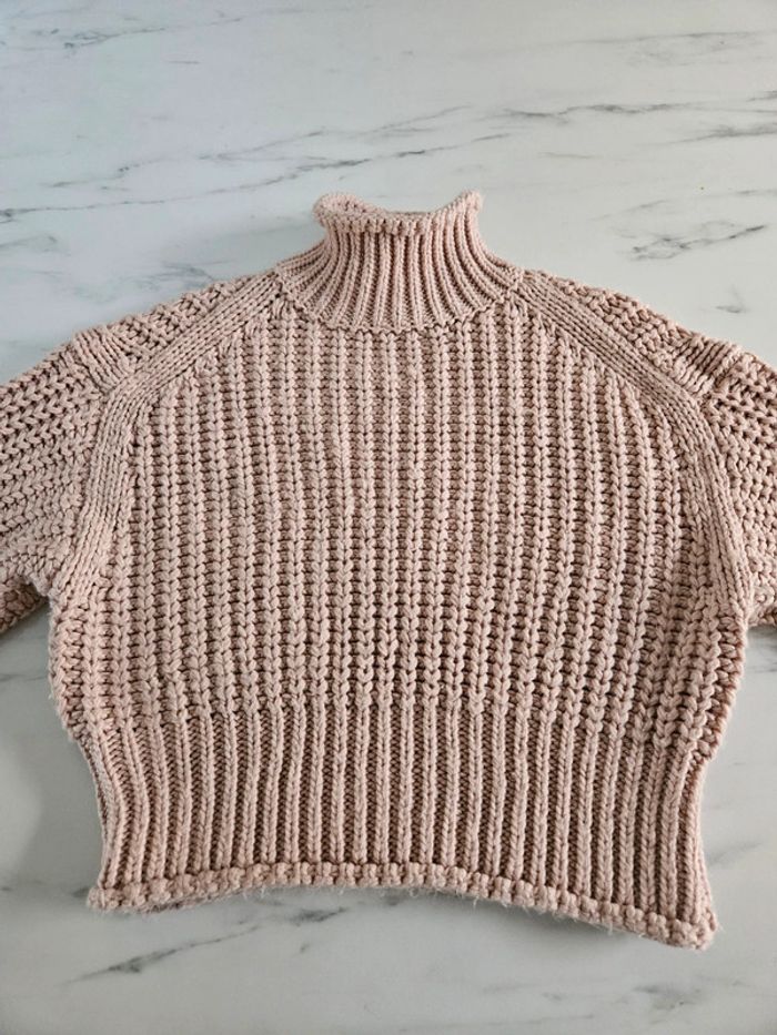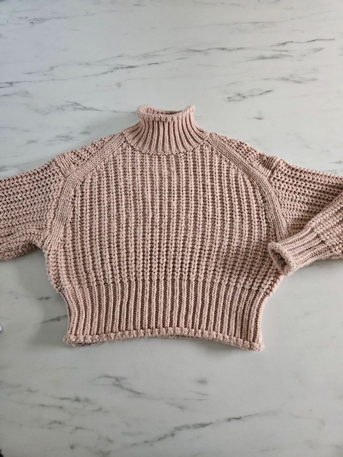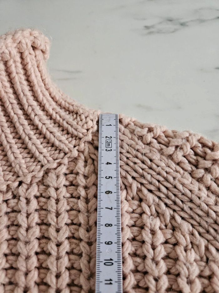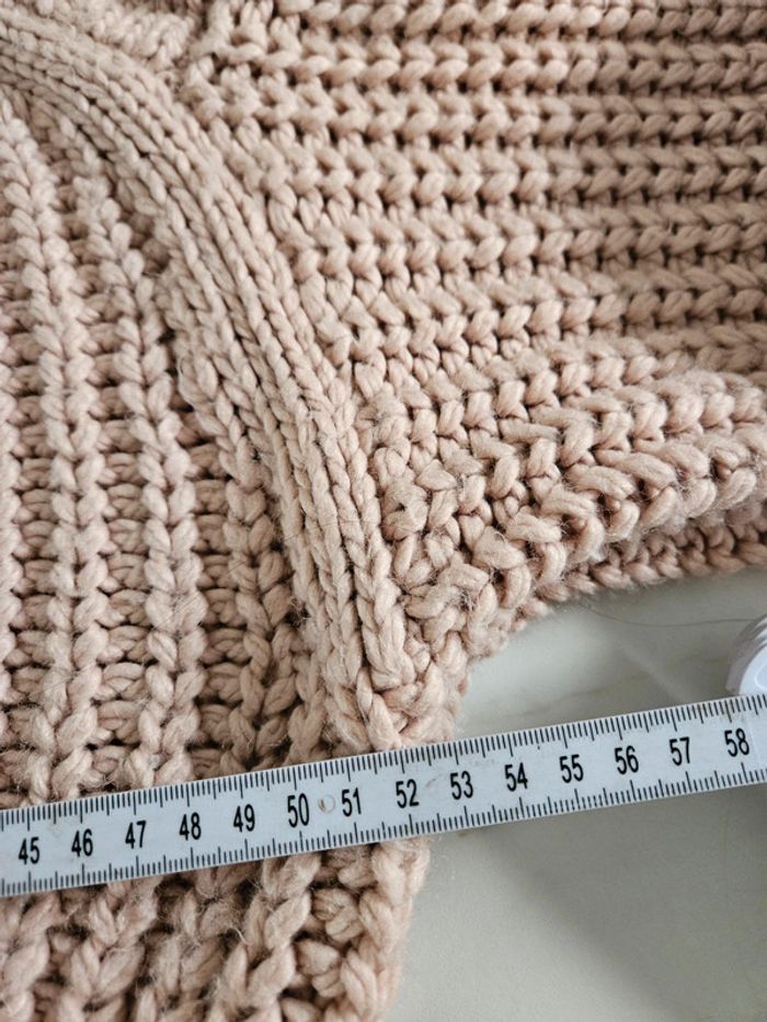 On dirait beige mais il est rose parme. Il tient chaud et contient de la laine. Dimensions sur les photos. Peut convenir pour un S et même M mais sera plus moulant. Porté mais reste en très bon état