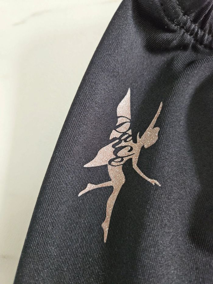 Il est en lycra donc pas de risque de peluche. En parfait état. La fée est pailletées mais pas visible sur photos