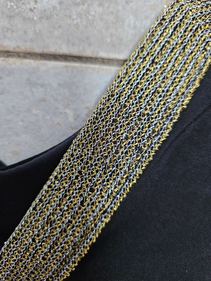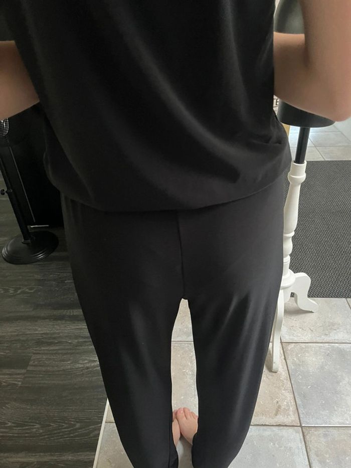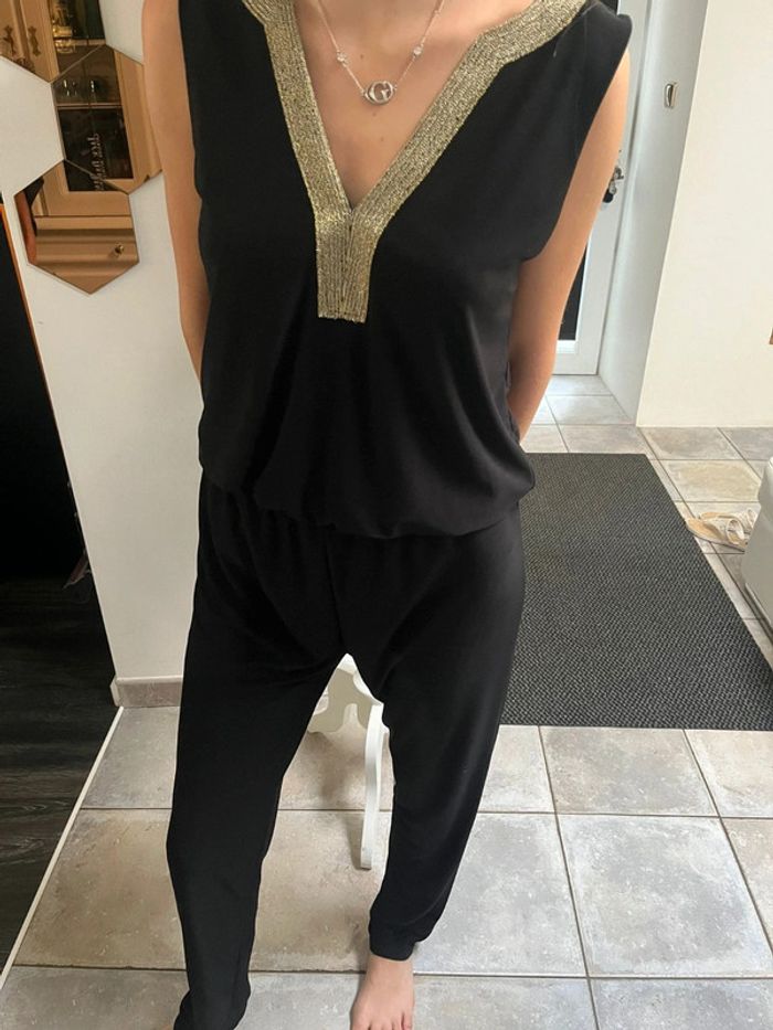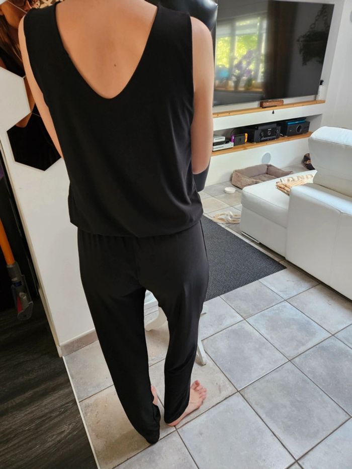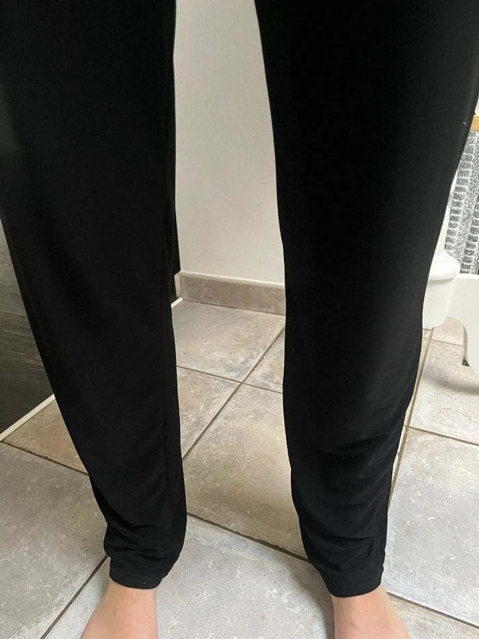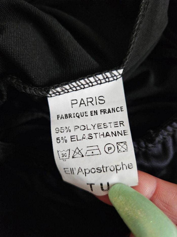 Matière fluide et agréable un peu comme du lycra. Taille unique mais comme sur les photos porté par une taille S État neuve portée juste 1 fois C'est une taille unique