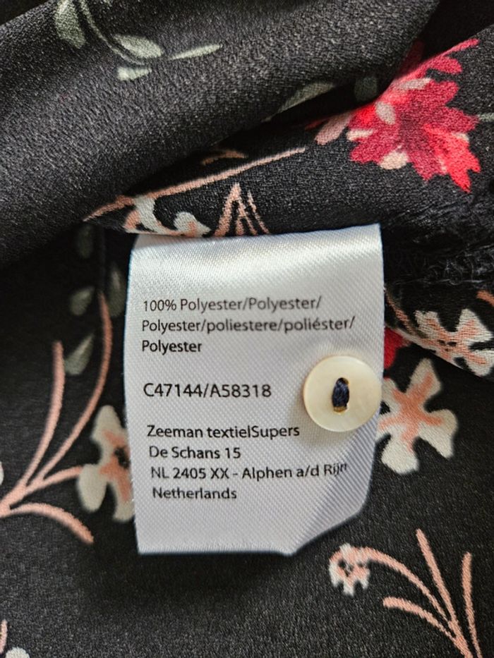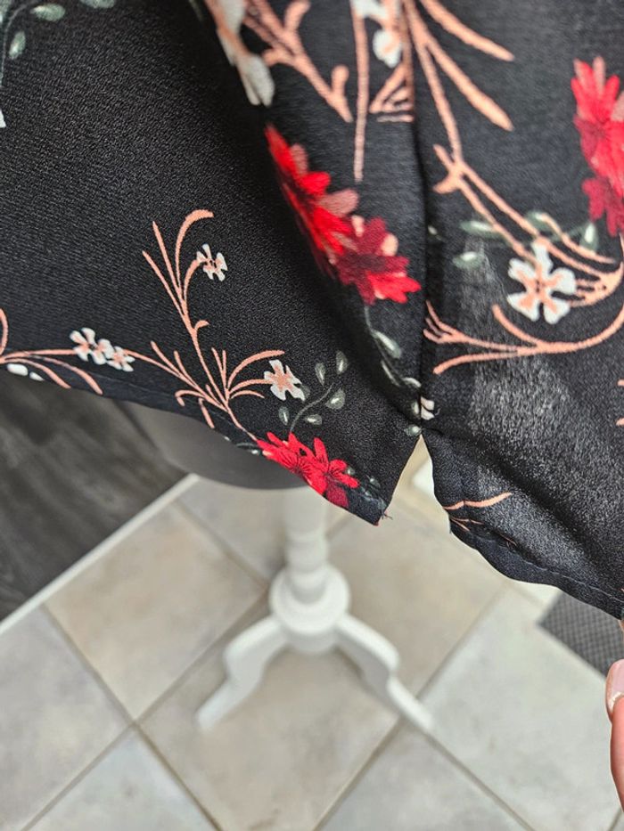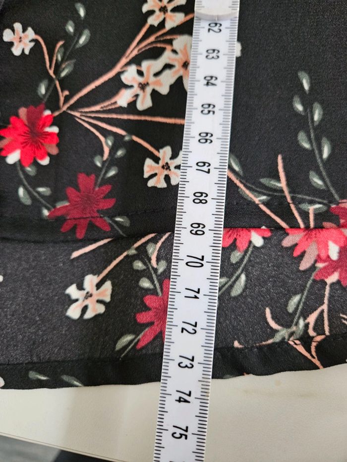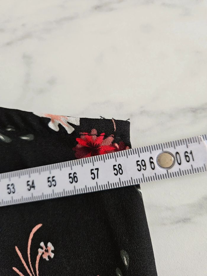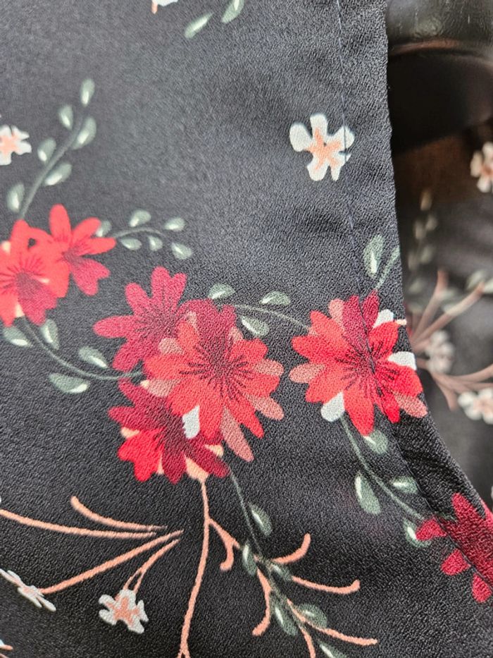 Matière légère un peu crépon dans un état irréprochable. Dimensions sur les photos. Noir à fleurs rouges et blanches