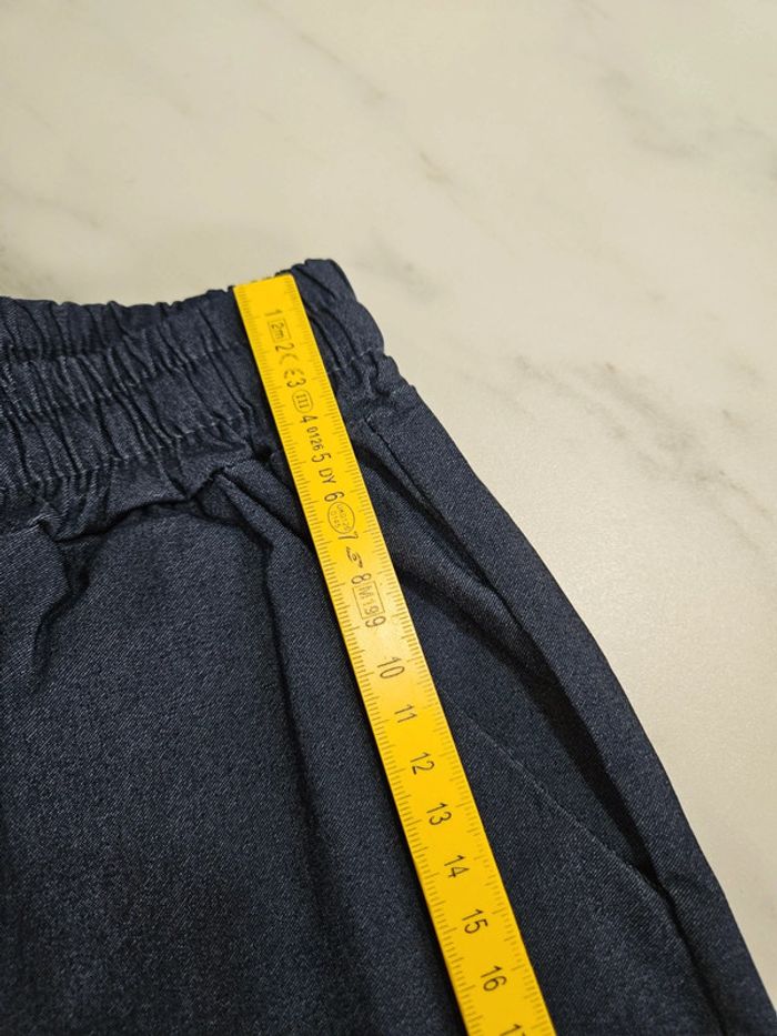 Pour taille S aspect jeans mais ça ne l'est pas il est tout en stretch donc bien élastique pour être à l'aise. État comme neuf