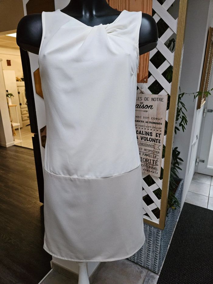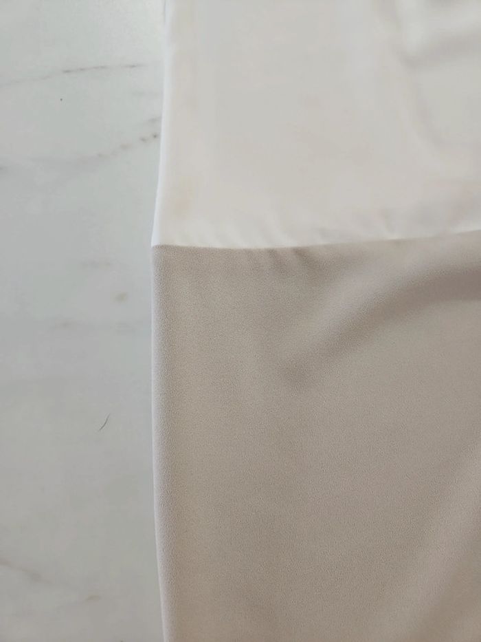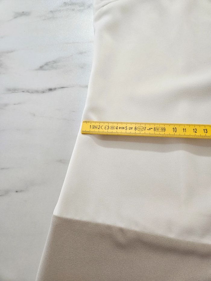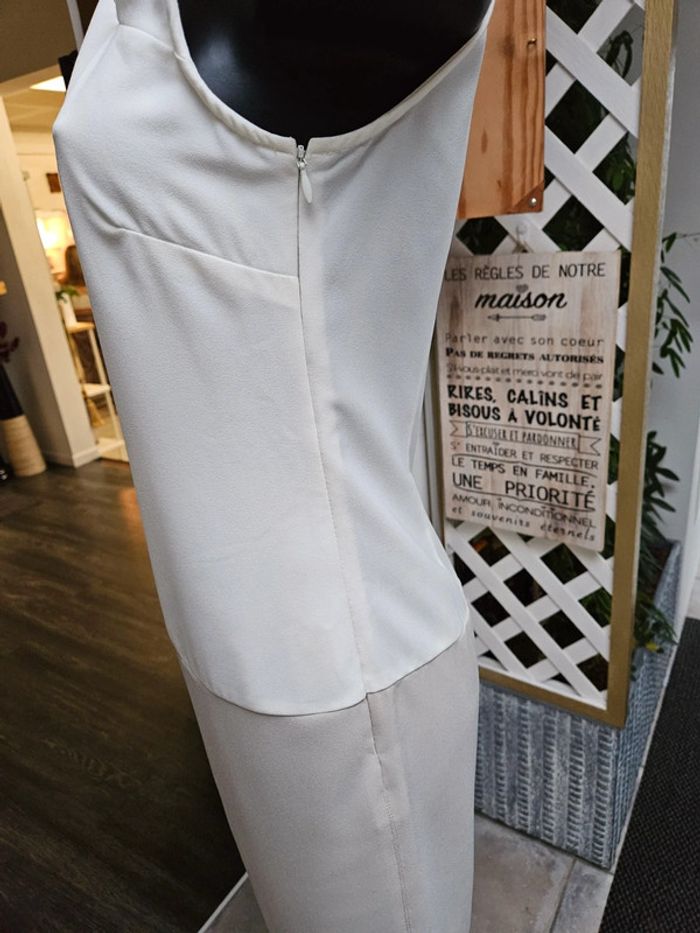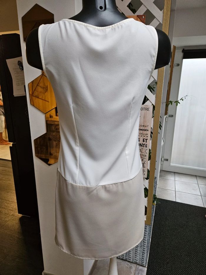 Robe toute légère Écru et beige un peu taupe comme la dernière photo. Portée mais reste en très bon état. Moulante pour un M et plus ample pour un S Dimensions sur les photos par précaution
