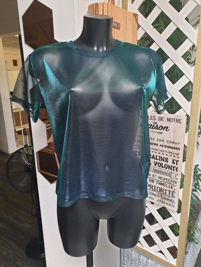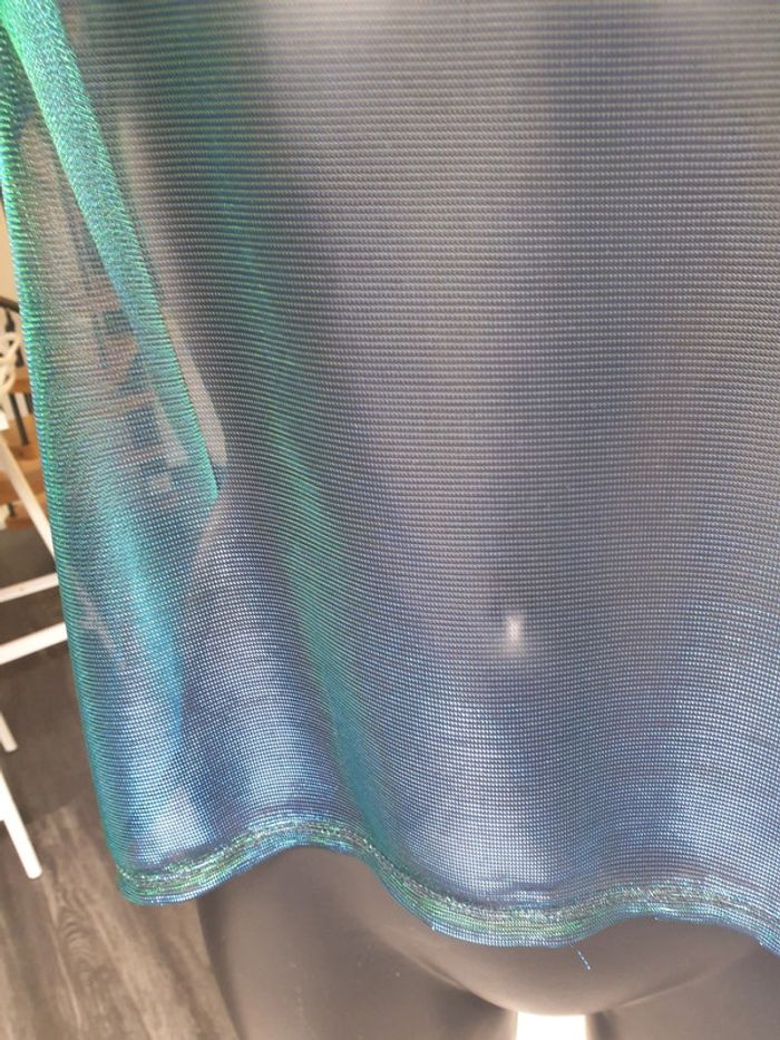 Il peut convenir pour un M également. Voile noir à reflets bleu et vert. Transparente en excellent état