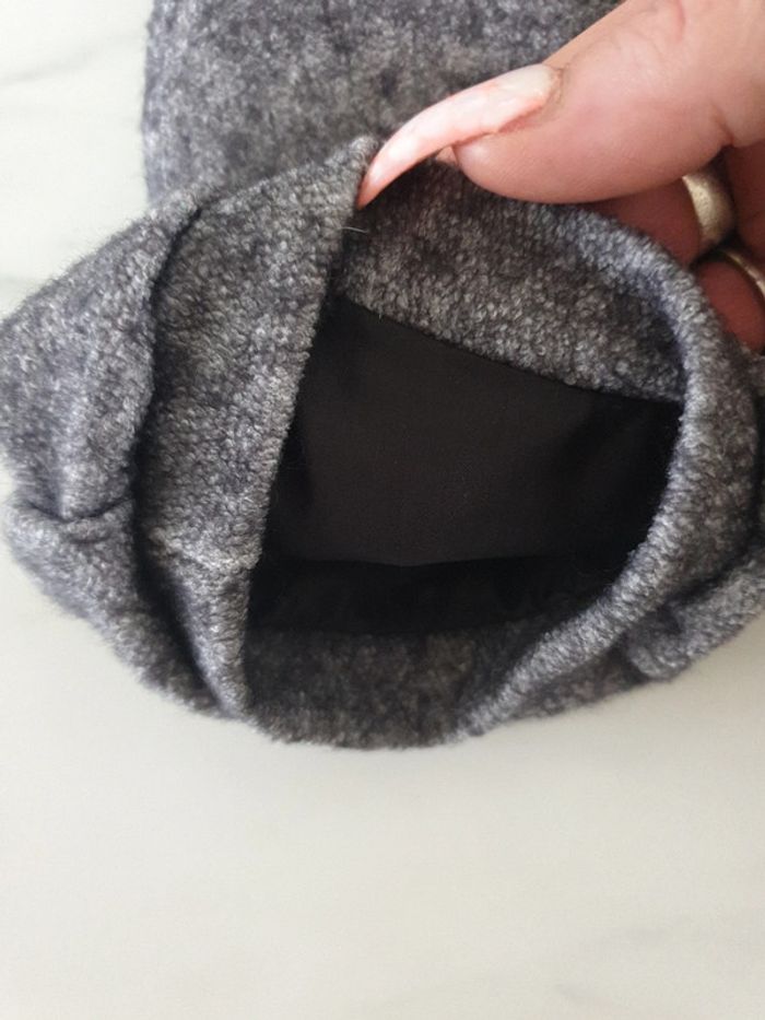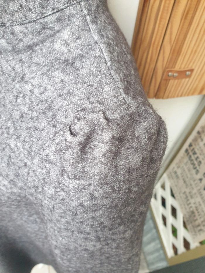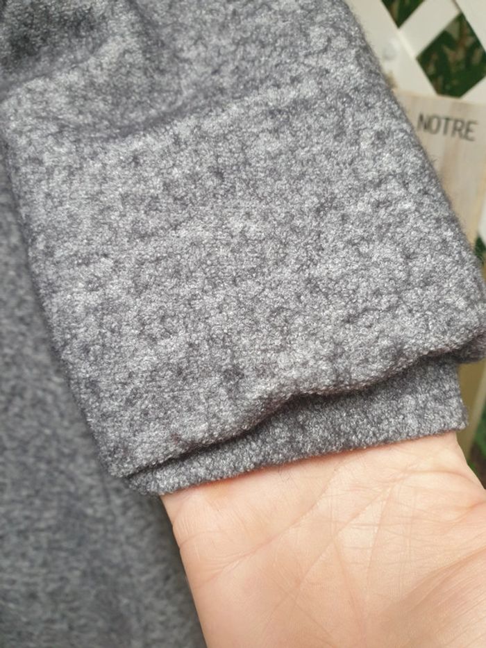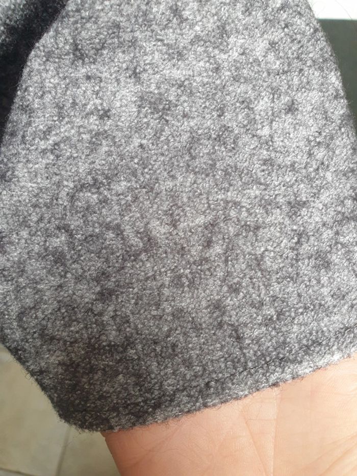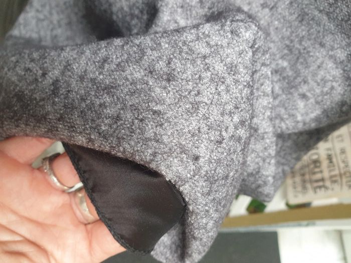 En lainage mais doublure dans tout l'intérieur. Ample pour un S et plus moulante a la poitrine pour un M Elle est en parfait état mais pas d'autre étiquette a l'intérieur