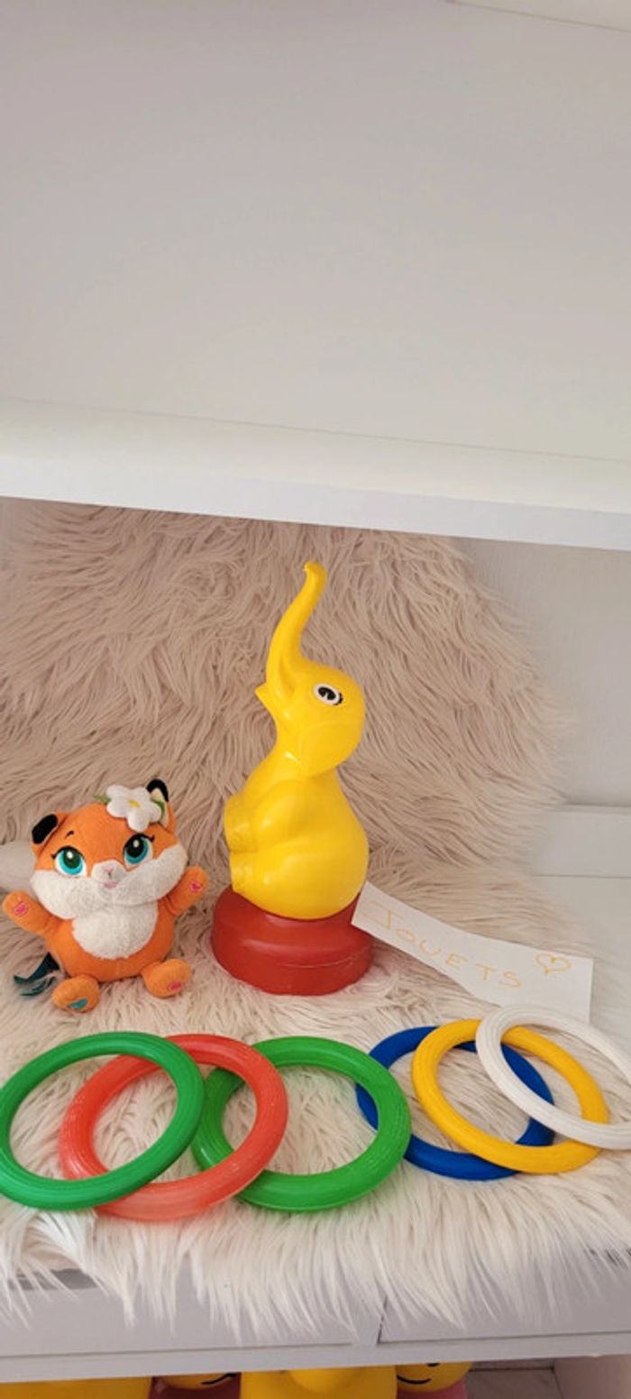 Jeu de l'éléphant Le mettre un peu loin et visé #jouetscecilek0931 3 cerceaux plein et 3 plats