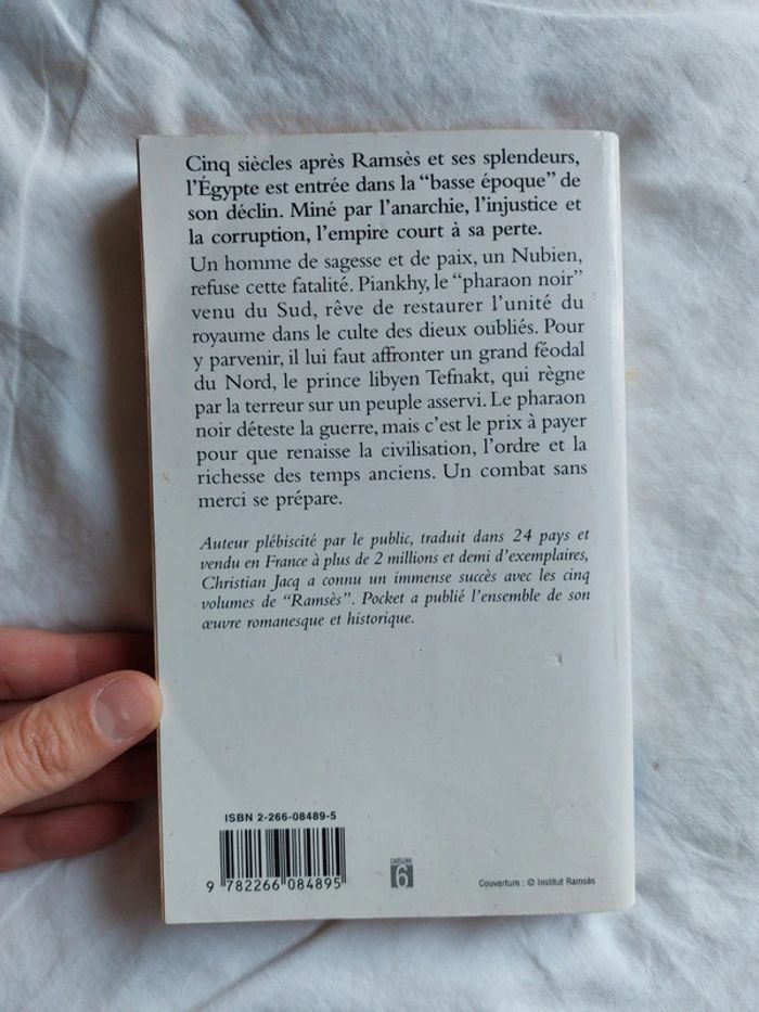 Livre de poche Le pharaon noir de Christian Jacq. Tranche en très bon état...mais bords légèrement marqués. D'autres livres du même style et même auteur présents dans mon dressing, n'hésitez pas à jeter un coup d'oeil. 😊 Remises sur lot activées (remises additionnelles si gros lot). #nana13242_livres_égypte