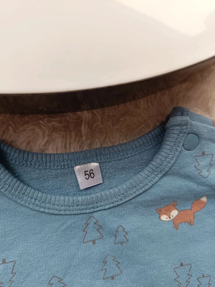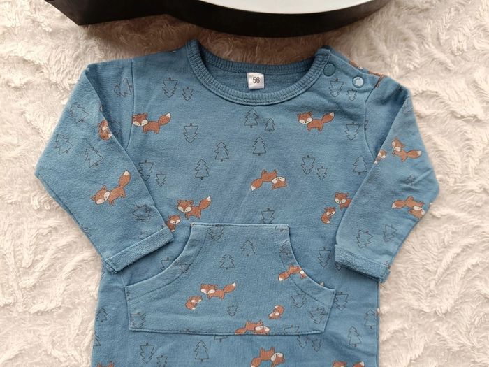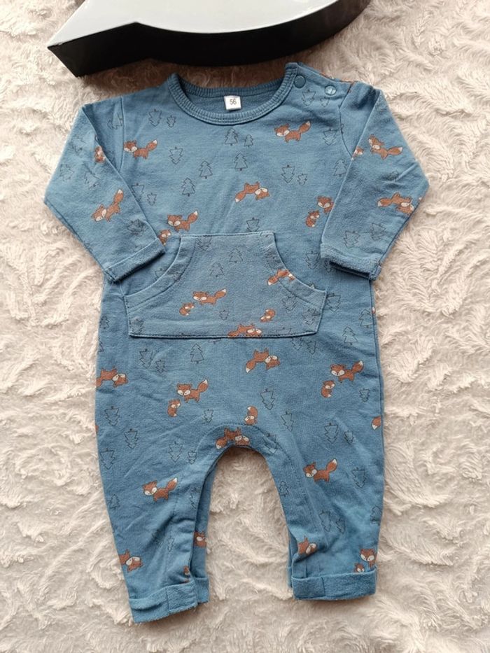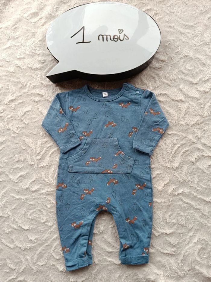 Très bon état. Taille indiquée : 56 d'où 1 mois. Ouverture par pressions au niveau de l'entrejambe pour un habillage et un change plus facile. #nathatfcGarçon1mois
