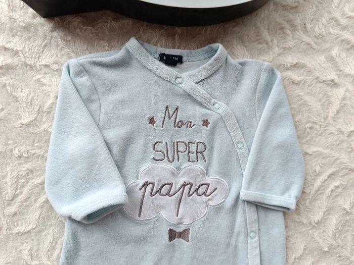 Pyjama grenouillère velours Garçon 1 mois Mon super Papa nuage Kiabi - photo numéro 3