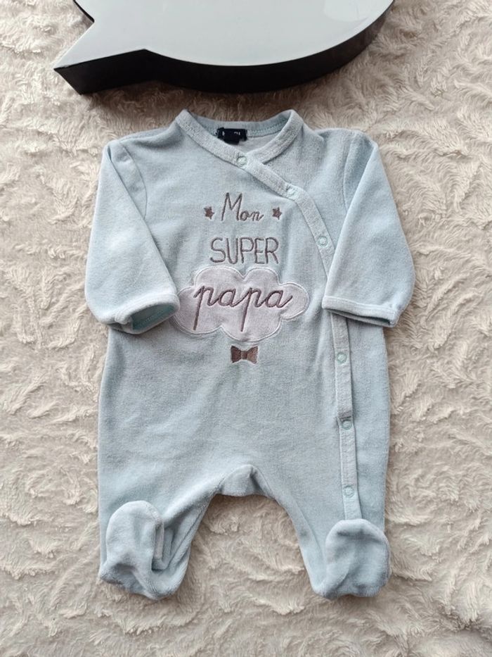 Pyjama grenouillère velours Garçon 1 mois Mon super Papa nuage Kiabi - photo numéro 1