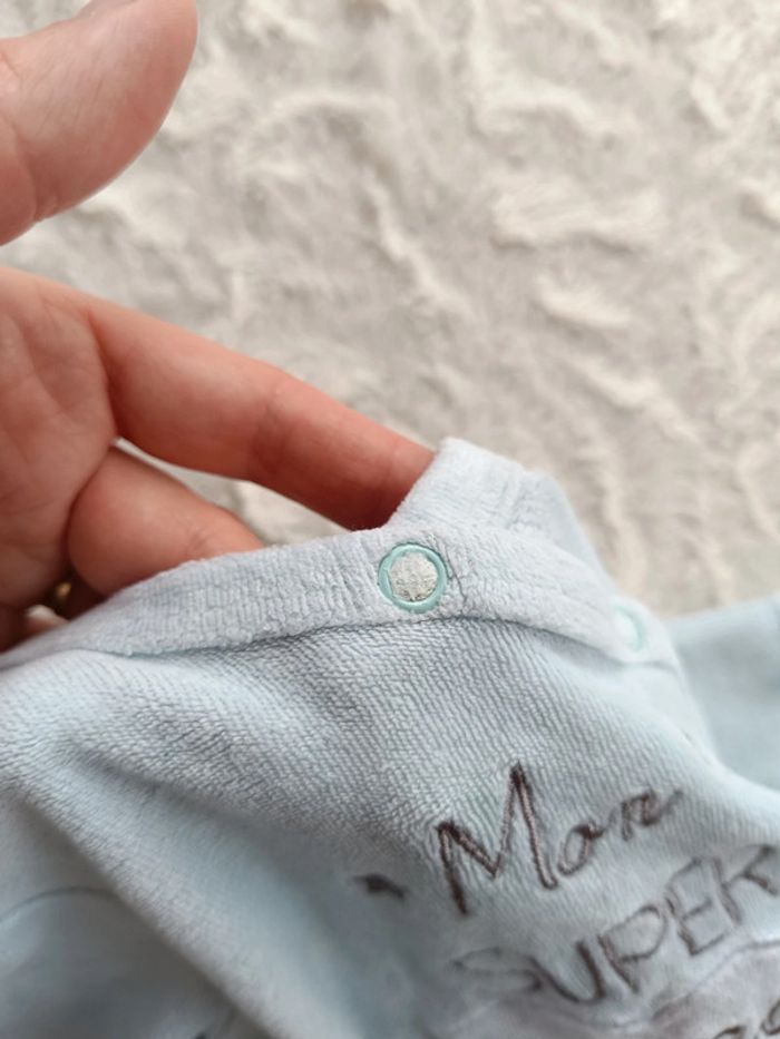 Bon état car la première pression est très légèrement jaunie mais ça se voit presque pas (voir la dernière photo). Ouverture par pressions sur le côté pour un habillage et un change plus facile. #nathatfcGarçon1mois
