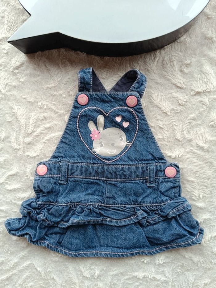 Robe jeans à bretelles Fille 1 mois lapin cœur In Extenso - photo numéro 1