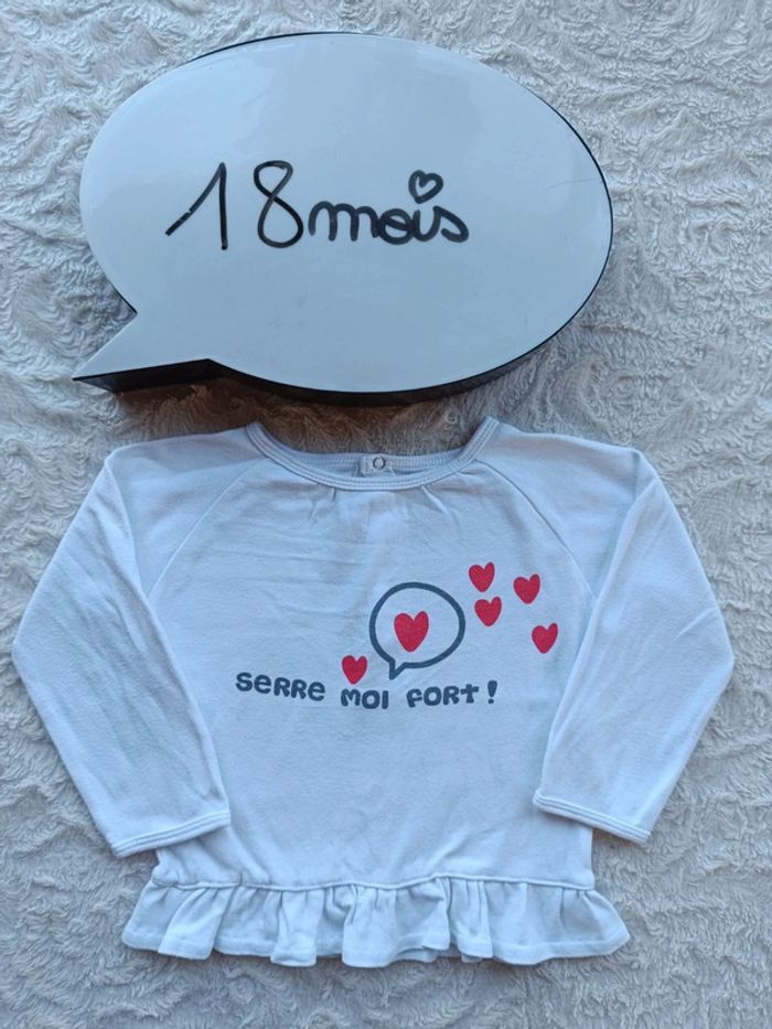 Tee shirt chemise manches longues Fille 18 mois Serre moi fort cœur Enfants Do 3 suisses 100% coton - photo numéro 6