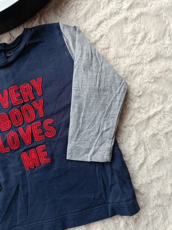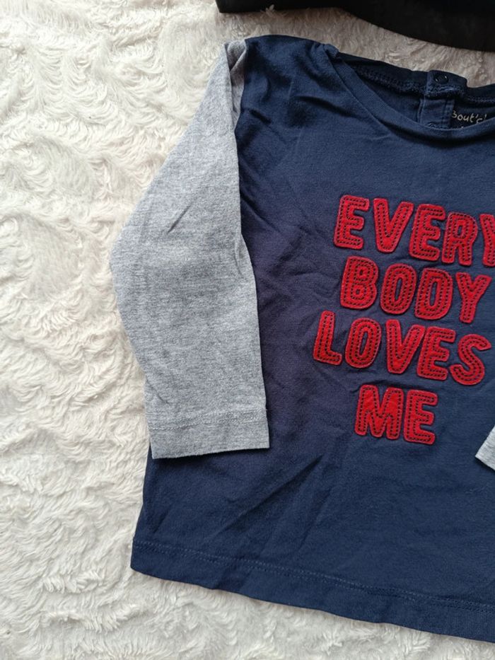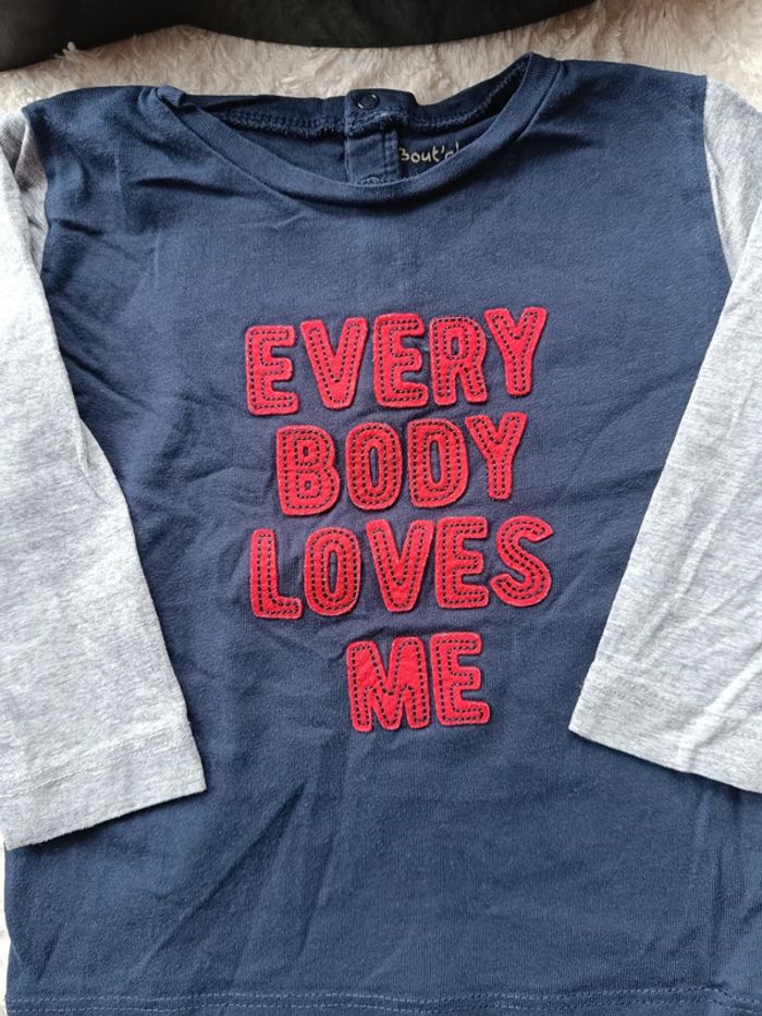 Tee shirt chemise manches longues Garçon 12 mois every body loves me Bout'chou - photo numéro 2