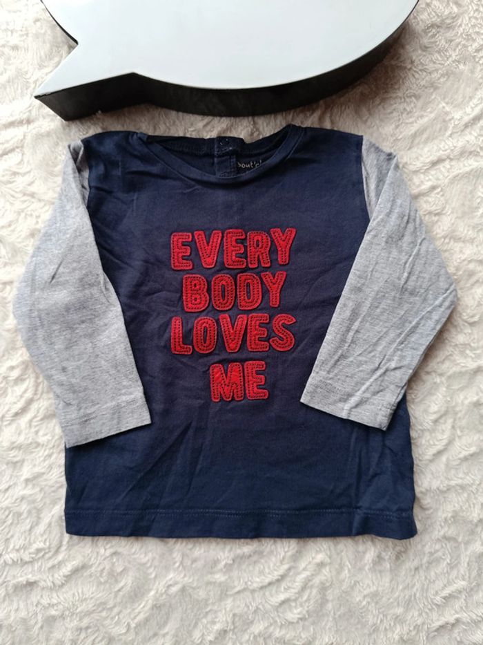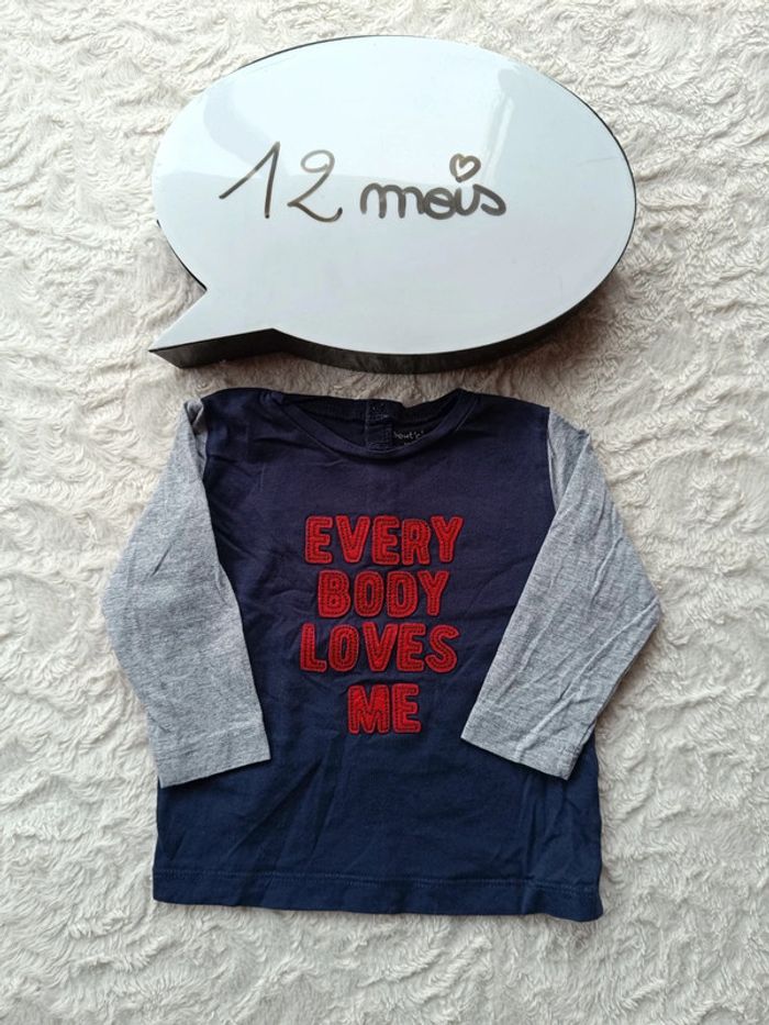 Tee shirt chemise manches longues Garçon 12 mois every body loves me Bout'chou