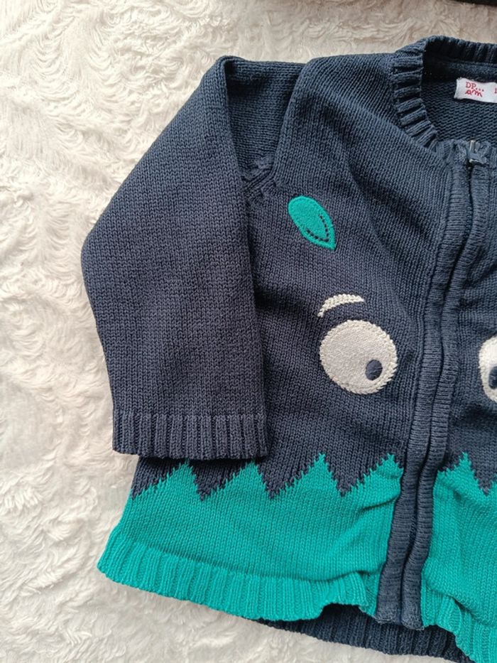 Gilet zippé maille Garçon 12 mois Monstre drôles de copains Dpam 100% coton - photo numéro 2