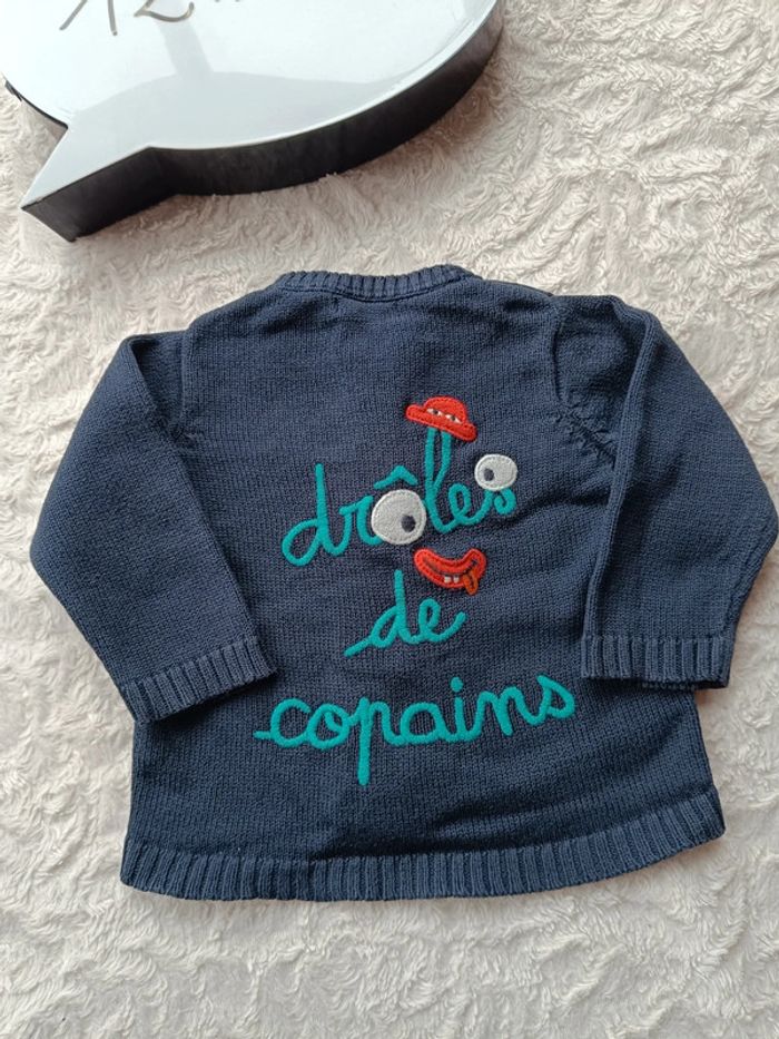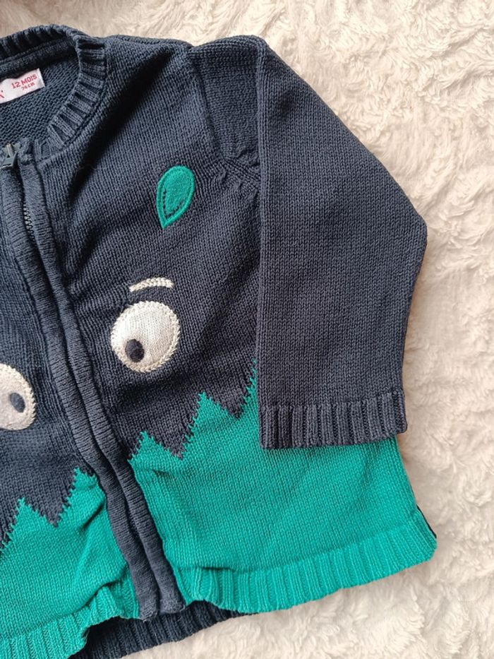 Gilet zippé maille Garçon 12 mois Monstre drôles de copains Dpam 100% coton - photo numéro 7