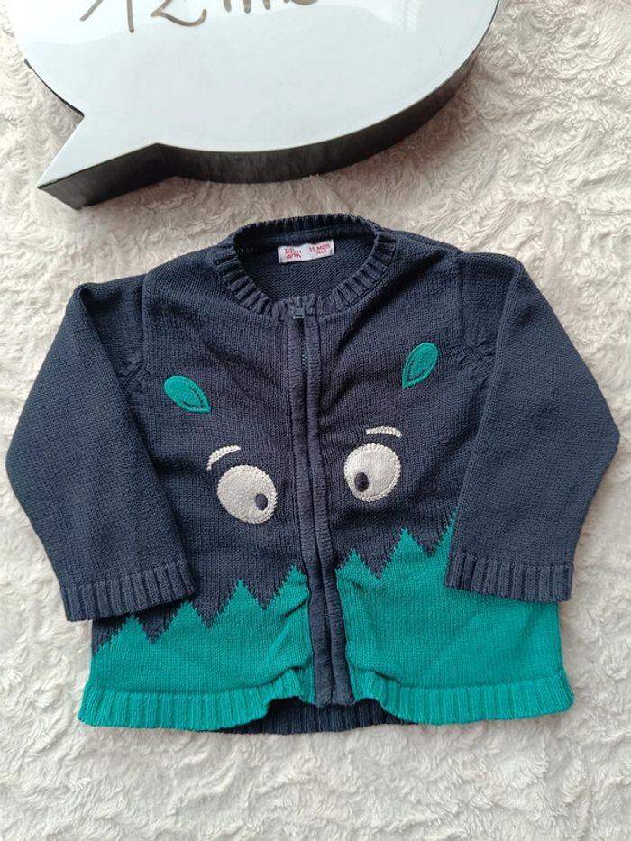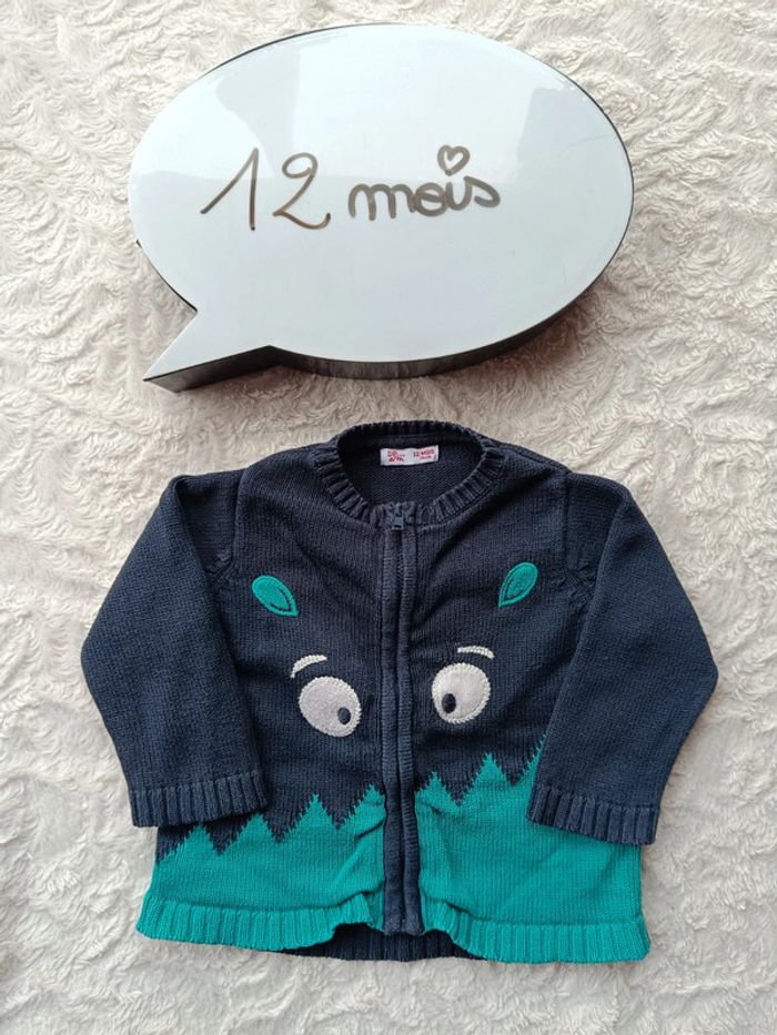 Gilet zippé maille Garçon 12 mois Monstre drôles de copains Dpam 100% coton - photo numéro 1