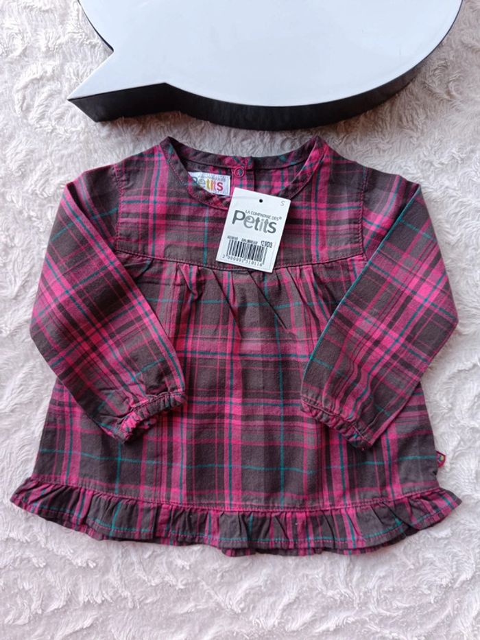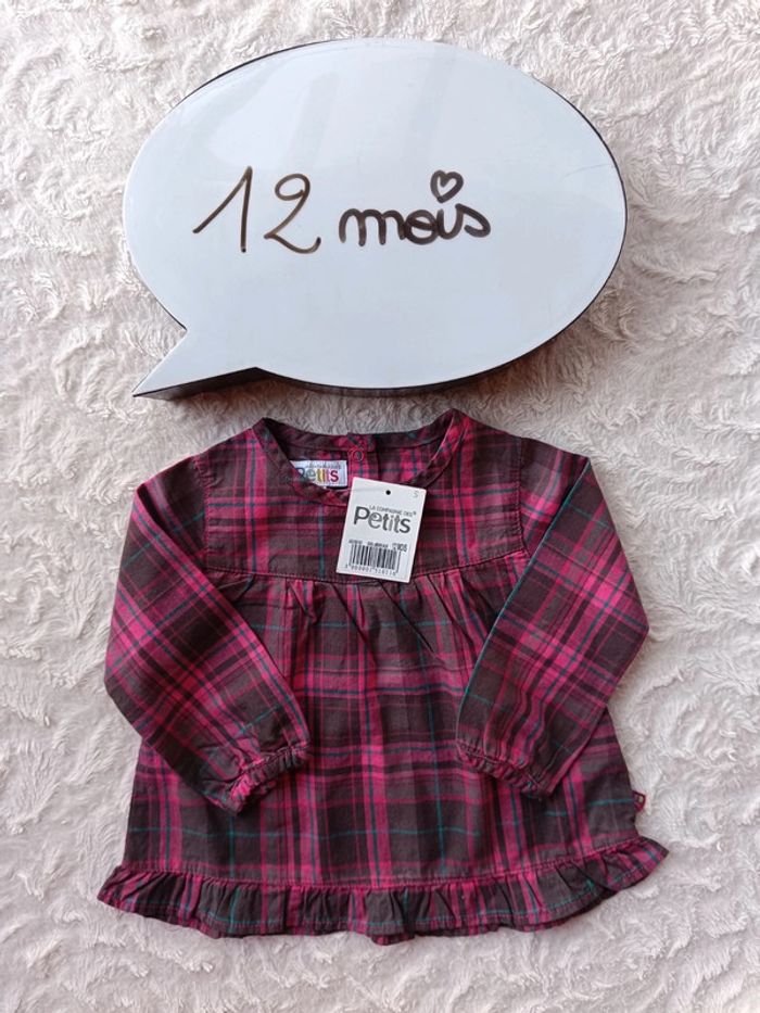 Blouse tunique chemise à carreaux manches longues Fille 12 mois la compagnie des petits 100% coton