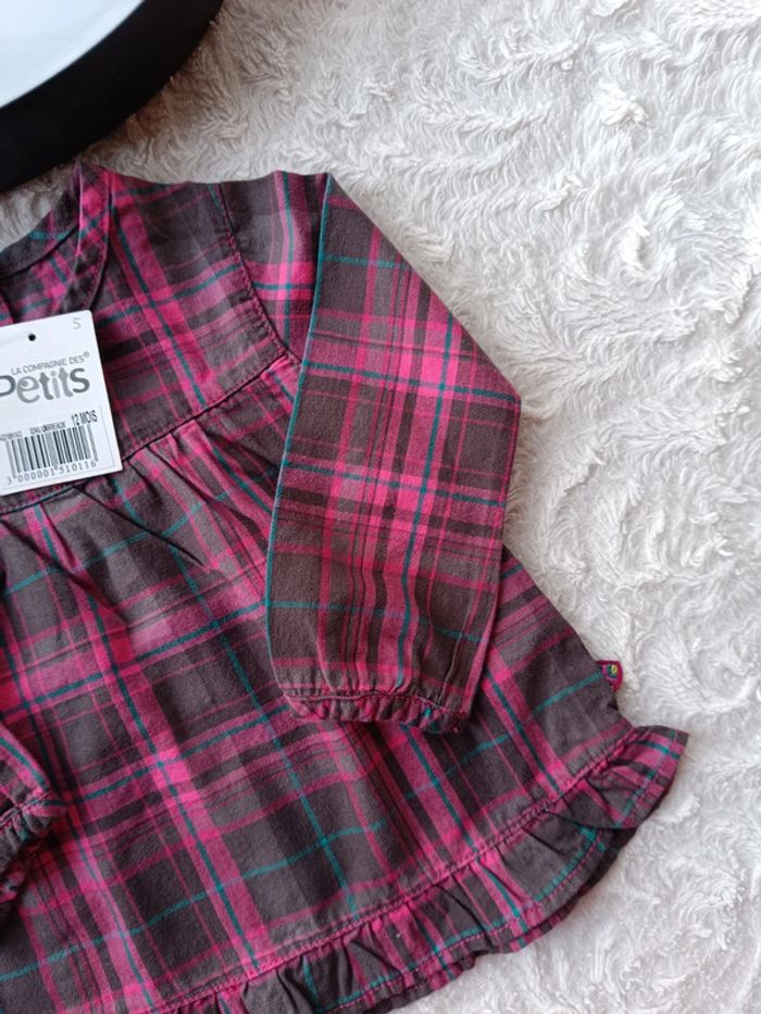 Blouse tunique chemise à carreaux manches longues Fille 12 mois la compagnie des petits 100% coton - photo numéro 9