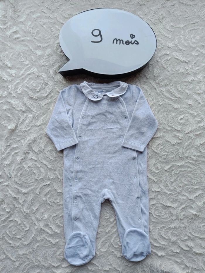 Pyjama grenouillère velours Garçon 9 mois Baleine Bout'chou - photo numéro 1
