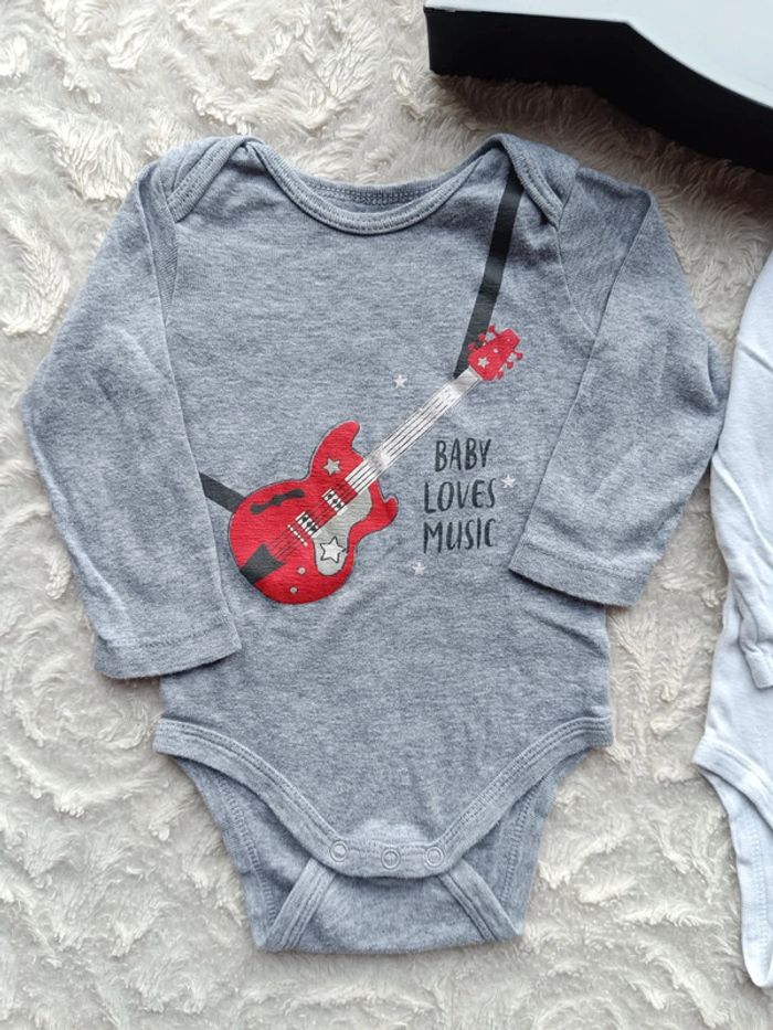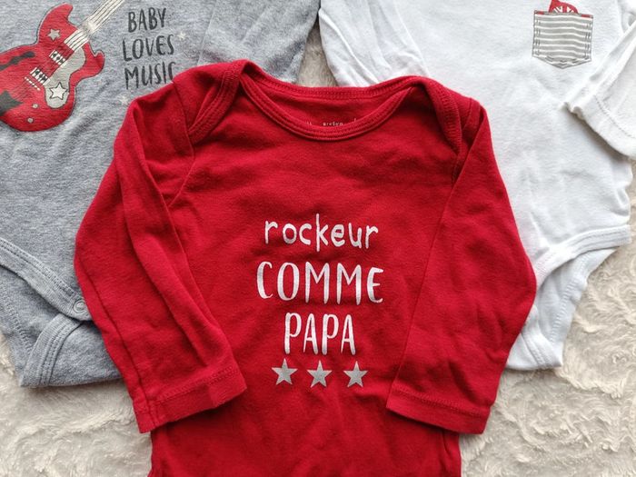 Lot de 3 bodies manches longues Garçon 9 mois Rockeur comme Papa guitare Baby loves music 100% coton - photo numéro 19