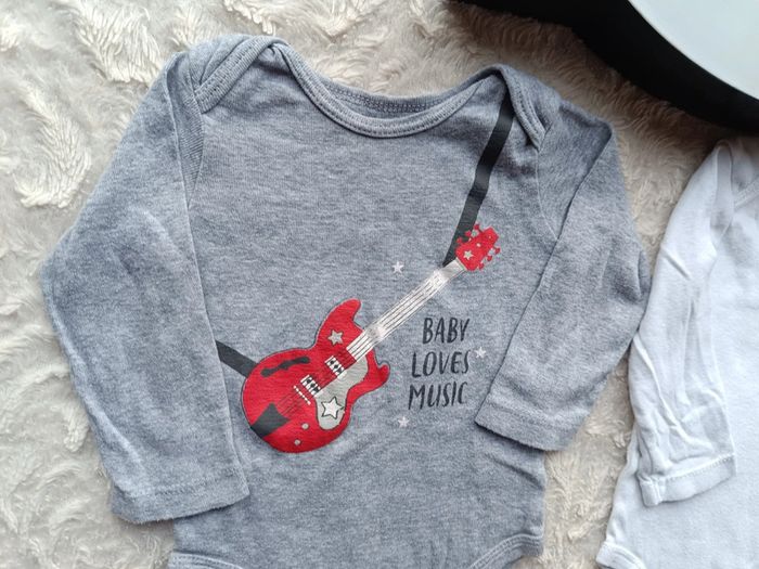 Lot de 3 bodies manches longues Garçon 9 mois Rockeur comme Papa guitare Baby loves music 100% coton - photo numéro 17