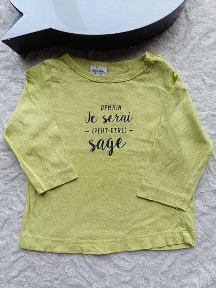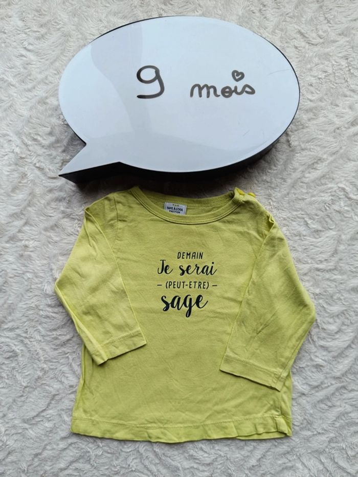 Tee shirt chemise manches longues Garçon 9 mois demain je serai (peut-être) sage Tao