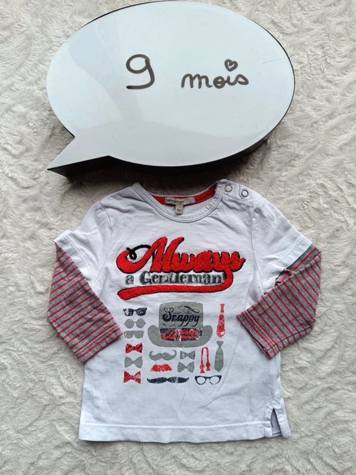 Tee shirt chemise manches longues Garçon 9 mois Always a gentleman Premaman 100% coton - photo numéro 1