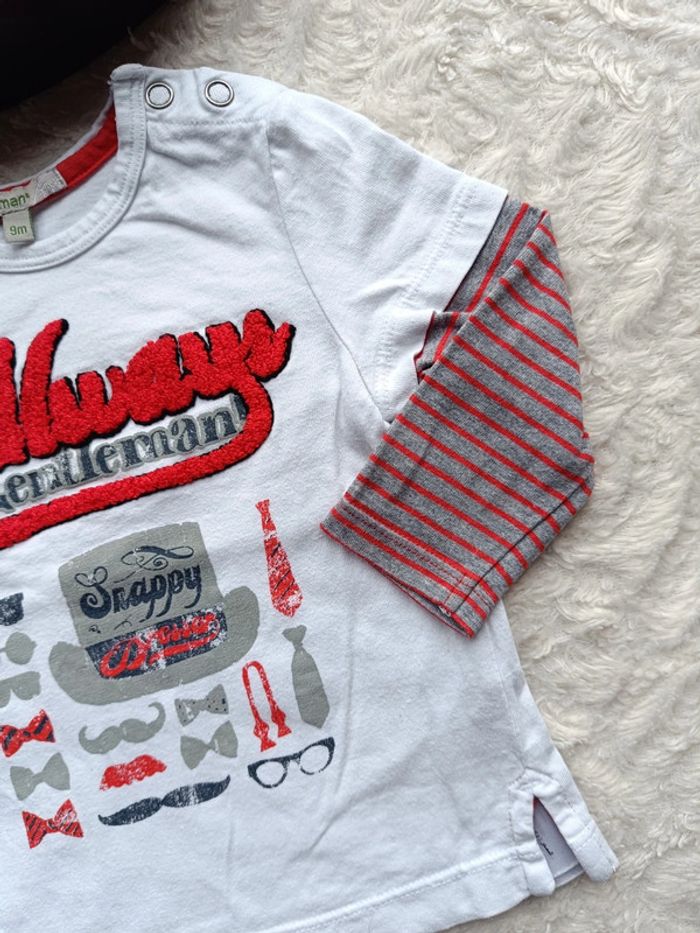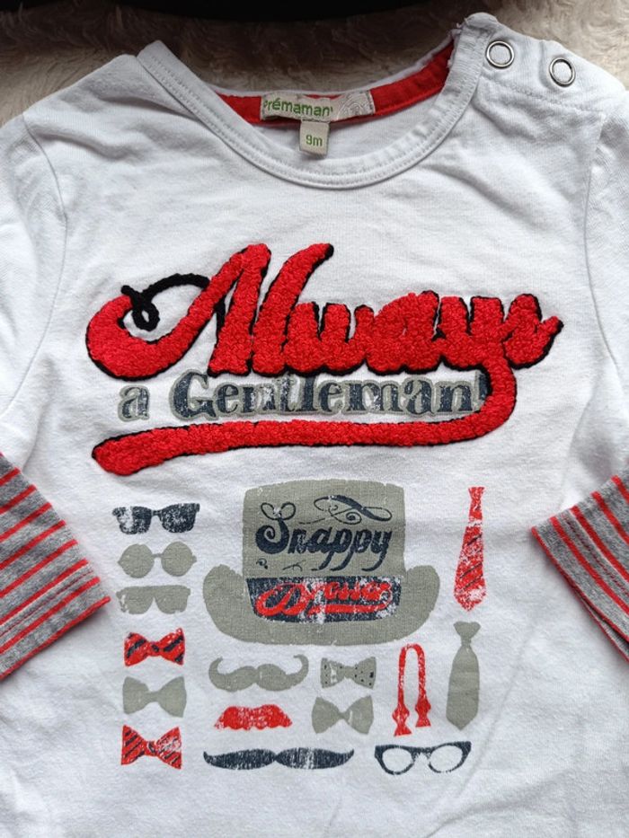 Tee shirt chemise manches longues Garçon 9 mois Always a gentleman Premaman 100% coton - photo numéro 2