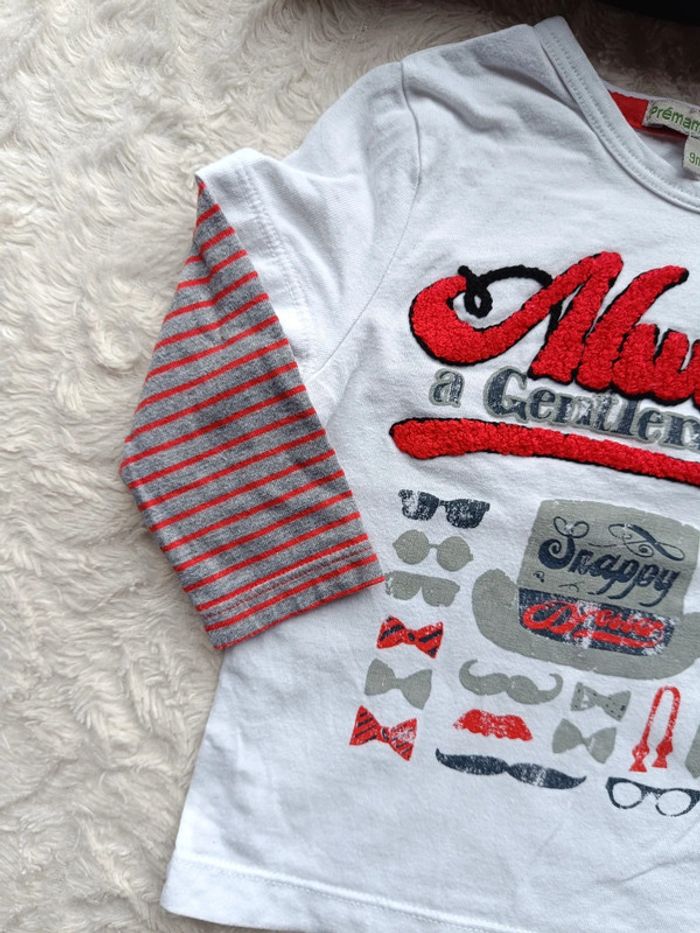 Tee shirt chemise manches longues Garçon 9 mois Always a gentleman Premaman 100% coton - photo numéro 9