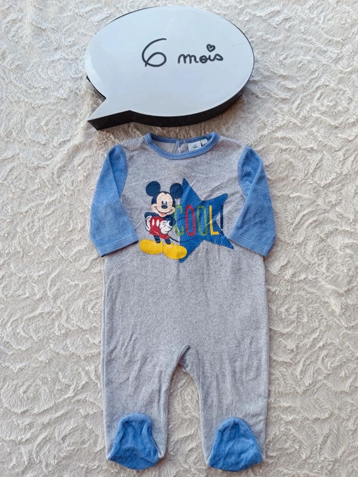 Pyjama grenouillère velours Garçon 6 mois Mickey Disney Baby - photo numéro 1