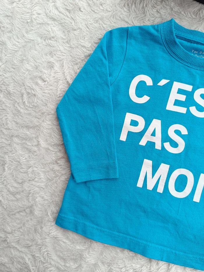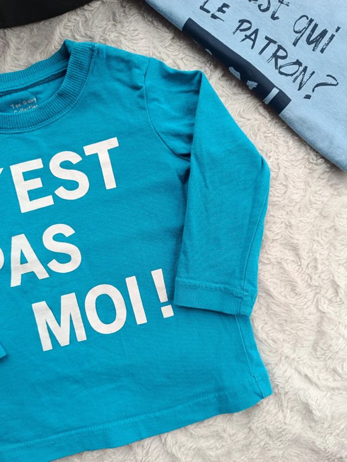 Tee shirt chemise manches longues + 1 offert Garçon 6 mois c'est pas moi ! Tex 100% coton - photo numéro 9