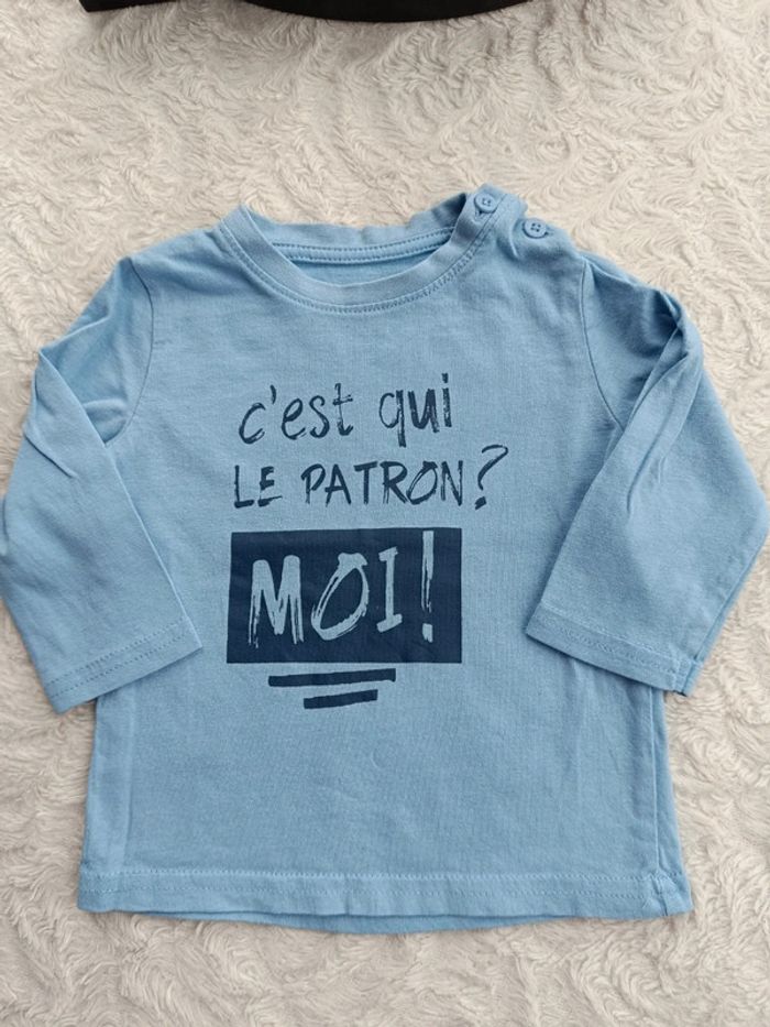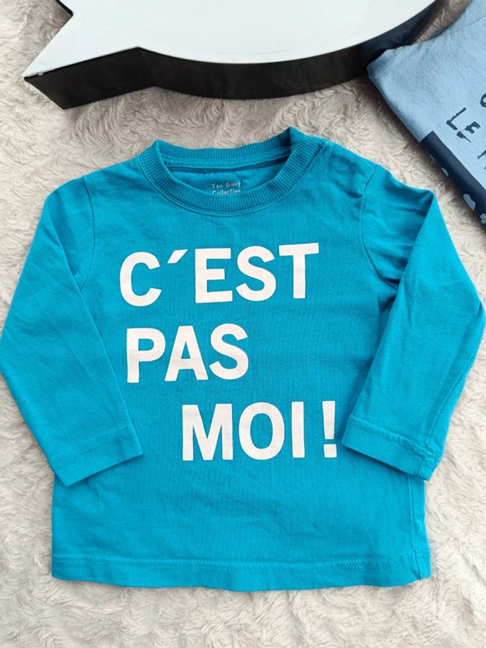 Tee shirt chemise manches longues + 1 offert Garçon 6 mois c'est pas moi ! Tex 100% coton - photo numéro 1