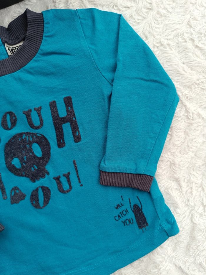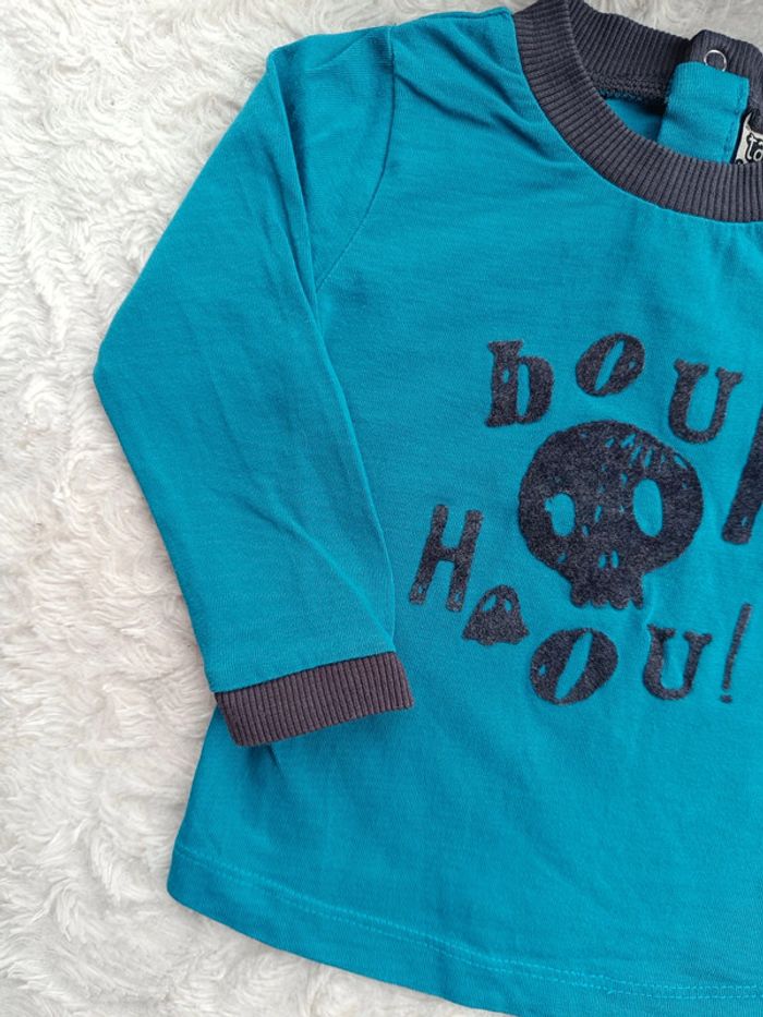 Tee shirt chemise manches longues Garçon 6 mois bouh tête de mort halloween Tao 100% coton - photo numéro 5
