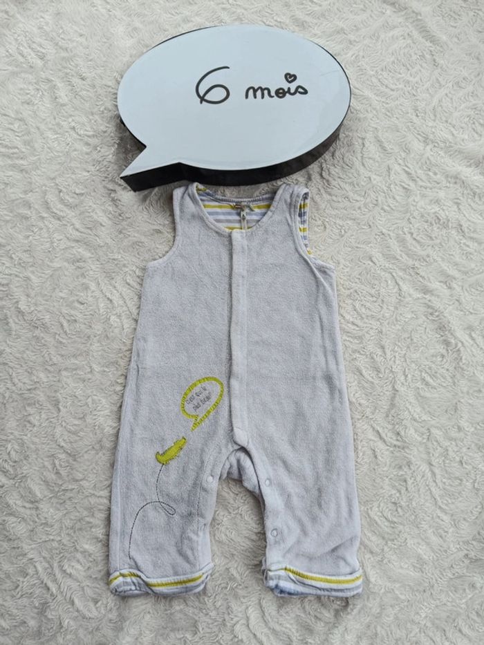 Très bon état. Ouverture par pressions sur le devant et au niveau de l'entrejambe pour un habillage et un change plus facile. #nathatfcGarçon6mois