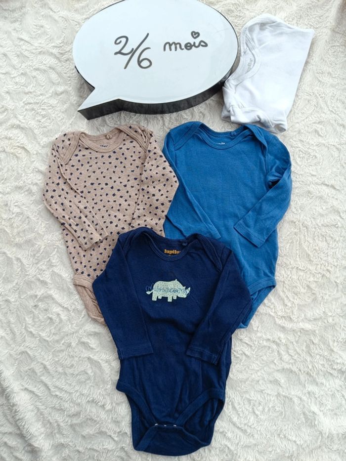 Lot de 3 bodies manches longues + 1 offert Garçon 2/6 mois rhinocéros Lupilu 100% coton bio - photo numéro 1