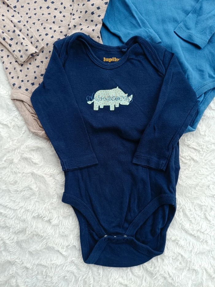 Lot de 3 bodies manches longues + 1 offert Garçon 2/6 mois rhinocéros Lupilu 100% coton bio - photo numéro 10