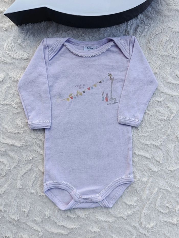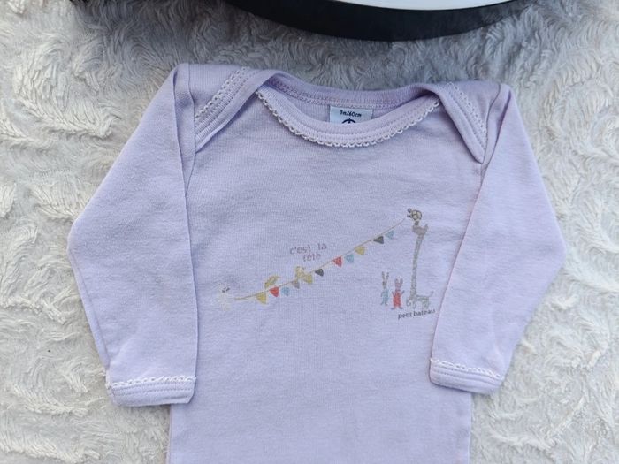 Body manches longues Fille 3 mois c'est la fête lapin Petit bateau 100% coton - photo numéro 3