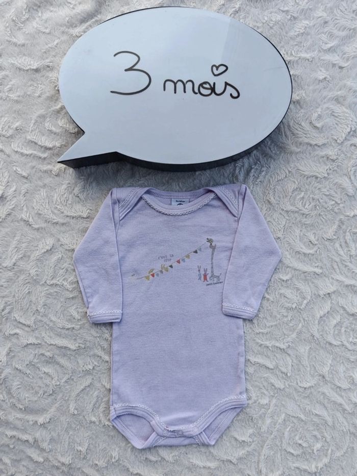 Body manches longues Fille 3 mois c'est la fête lapin Petit bateau 100% coton - photo numéro 8