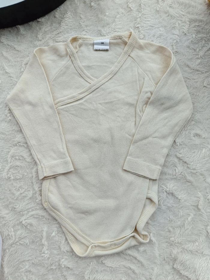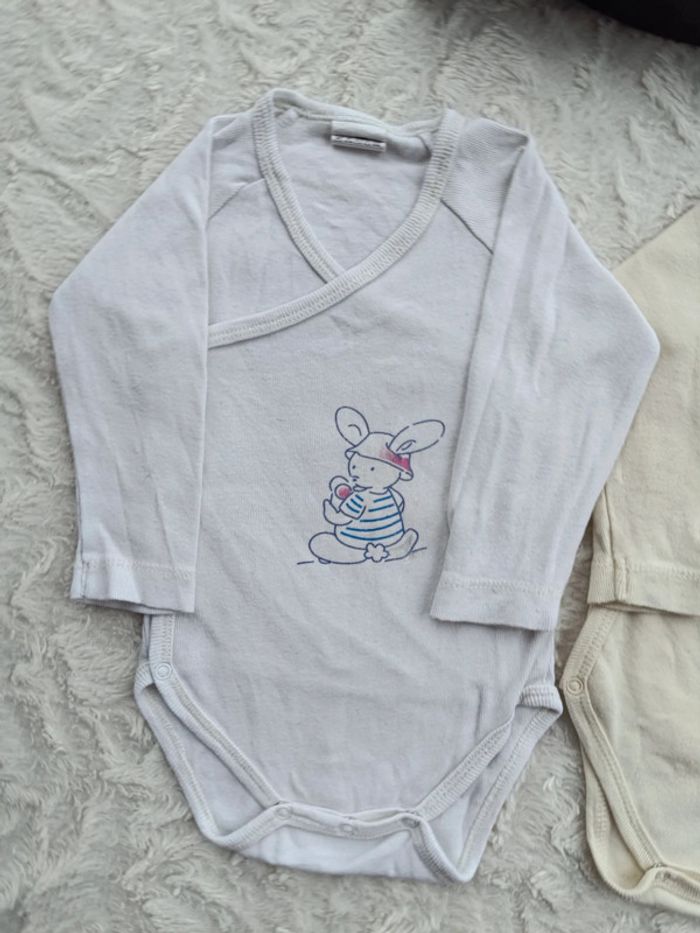 Lot de 2 bodies croisés manches longues Garçon 3 mois Lapin 100% coton - photo numéro 1