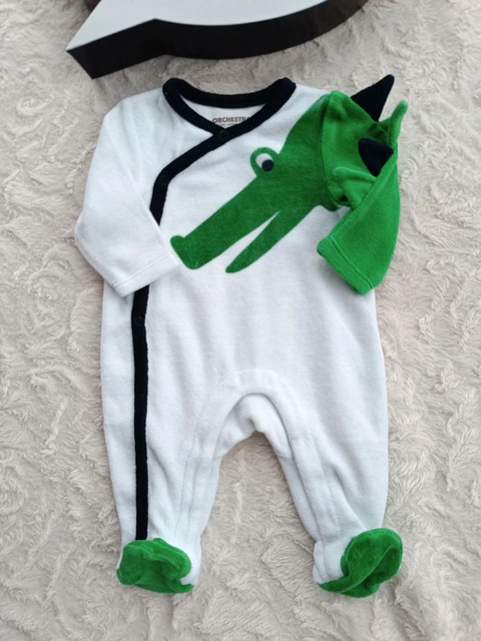 Pyjama grenouillère velours Garçon 1 mois Crocosaure Crocodile Orchestra - photo numéro 1