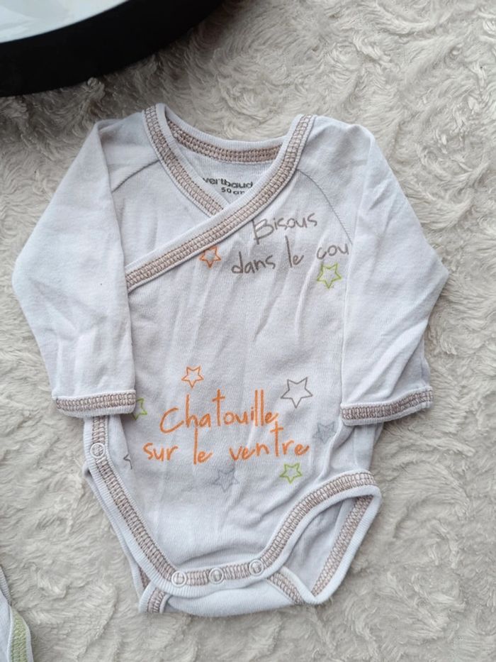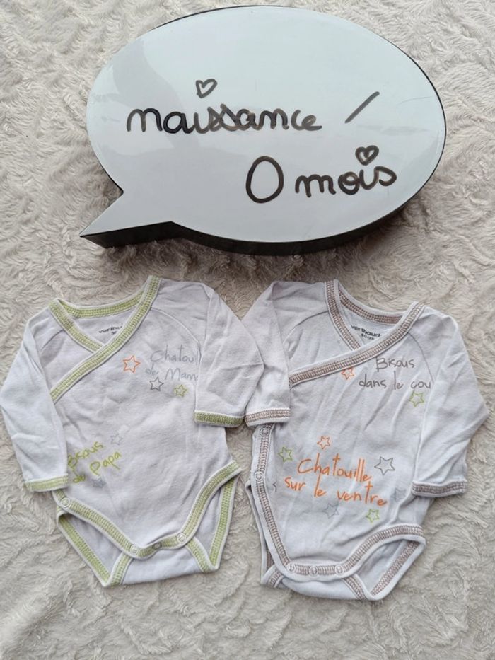 Lot de 2 bodies croisés manches longues Mixte 0 mois Naissance Maman Papa étoiles 100% coton - photo numéro 14