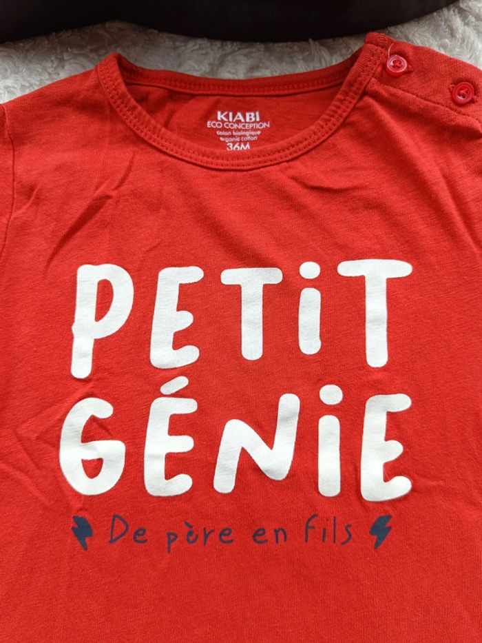 Tee shirt manches courtes Garçon 36 mois Petit génie de père en fils Eco conception 100% coton bio