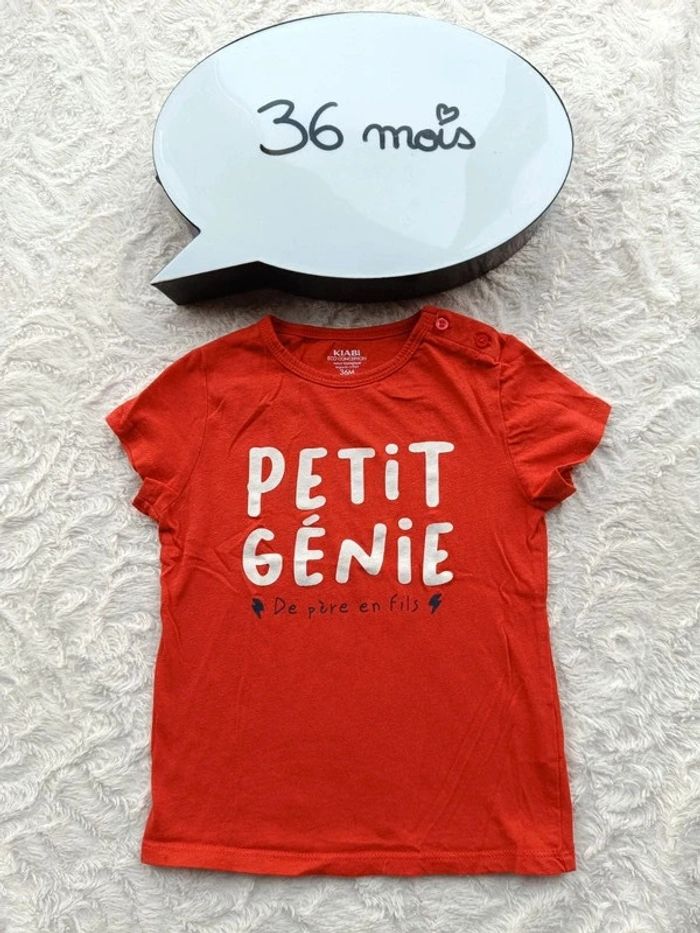 Tee shirt manches courtes Garçon 36 mois Petit génie de père en fils Eco conception 100% coton bio - photo numéro 1
