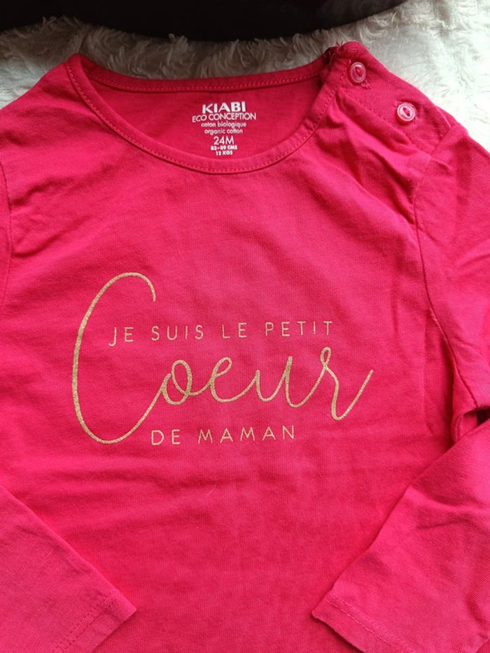 Tee shirt chemise manches longues Fille 24 mois Petit cœur Maman Kiabi Eco conception 100% coton bio - photo numéro 2