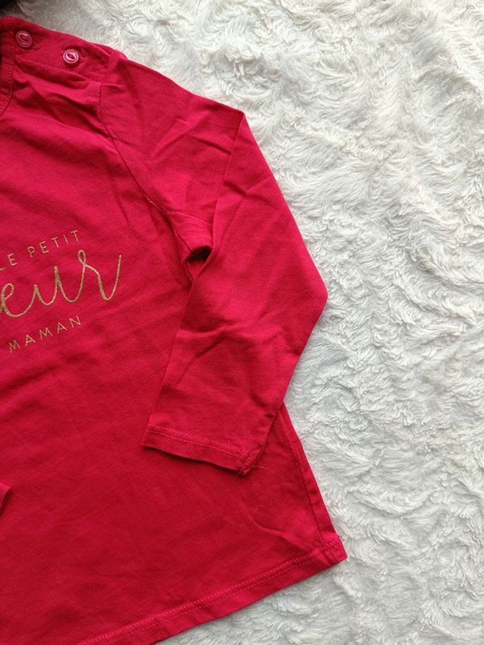 Tee shirt chemise manches longues Fille 24 mois Petit cœur Maman Kiabi Eco conception 100% coton bio - photo numéro 5