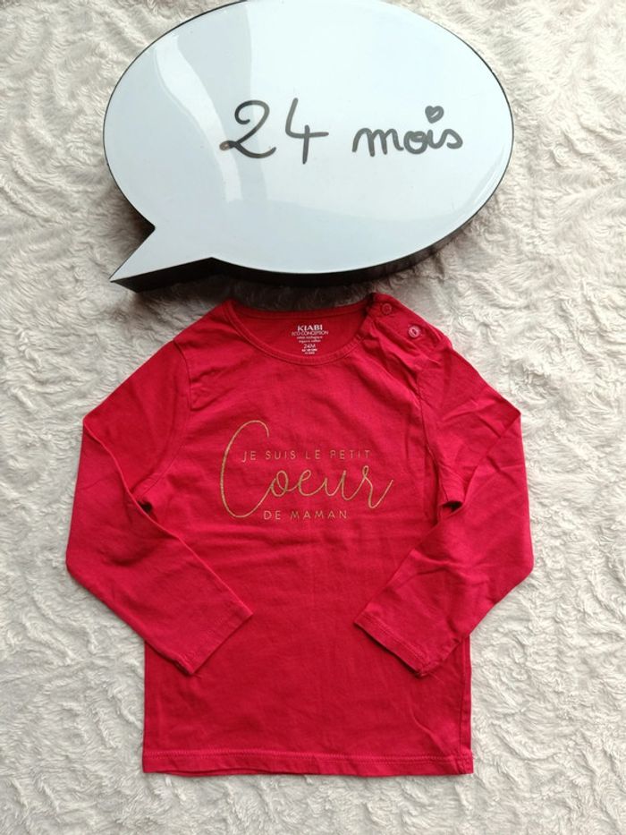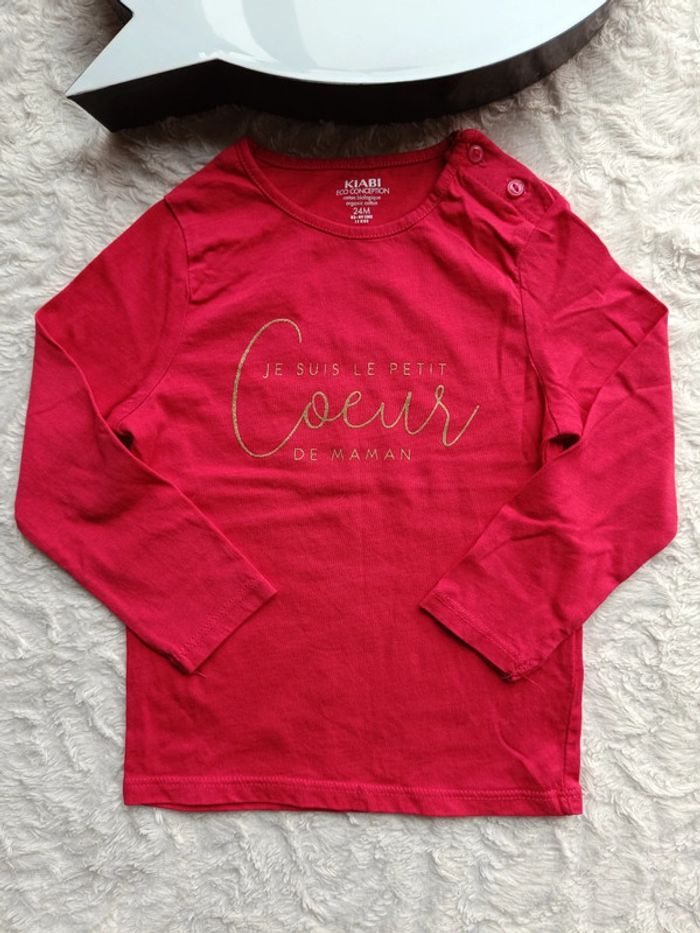 Tee shirt chemise manches longues Fille 24 mois Petit cœur Maman Kiabi Eco conception 100% coton bio - photo numéro 1