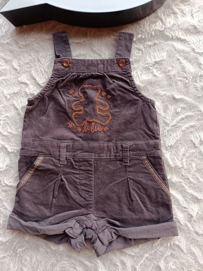 Salopette short Fille 6 mois velours Ourson Lulu castagnette Gémo - photo numéro 1