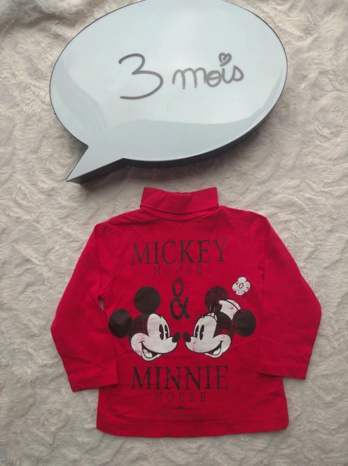 Sous pull col roulé Mixte 3 mois Mickey Minnie Disney 100% coton - photo numéro 4